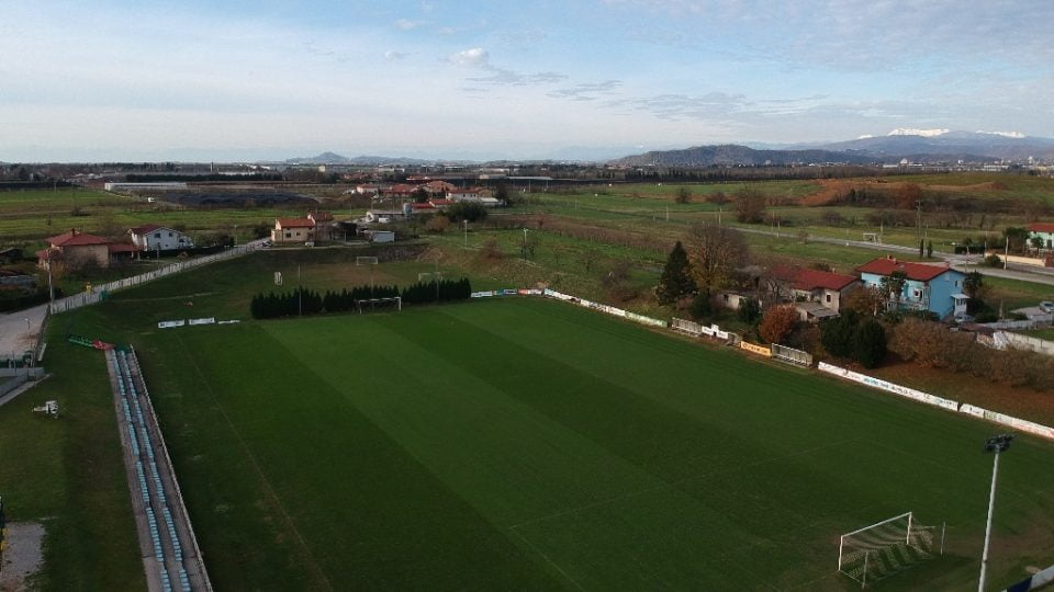 Spodnje igrišče »V Dolinci« meri 105 x 68 m, leži v naravni kotlini, torej pod ravnjo okoliškega terena in je postavljeno pravokotno na zgornje igrišče. Ima zelo dobro urejeno drenažo (odvodnjavanje) in sistem namakanja, ki je bil postavljen v letu 2002, ko so na tem igrišču odigrali tudi prve uradne tekme. Igralna površina je zelo kakovostna, poraščena z ustrezno travo in negovana, igrišče pa ustreza kriterijem za vse ravni tekmovanja. Ob južnem robu je med drugim postavljena tudi betonska tribuna, trenutno še nepokrita in primerna za približno 300 gledalcev.